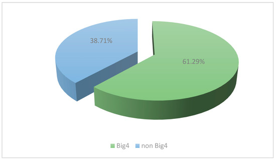 A key factor in reporting KAMs is the type of auditor issuing the audit report, particularly whether they are part of a Big4 or non-Big4 company. Following the synthesis of the analyzed data, the situation of auditors by type is shown in Figure 1.