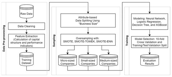 As derived from the literature, we first split the dataset into three training sets (micro, small, and medium) using the attribute “business size” to cope with the class imbalance problem in the dataset (; ; ). After data cleaning, we excluded the large companies in this study because the lower quality caused by increased missing and invalid values in the remaining 4605 entries was insufficient for a multi-class classification problem.