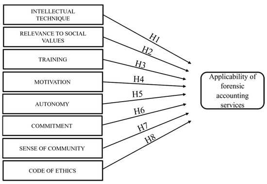 Thus, the consideration for an occupational group was based on the degree to which an occupation exhibits qualities of a profession in each of these dimensions, rather than merely on a checklist of whether it meets the criteria or not. Figure 1 illustrates the impact of the professionalism theory’s eight constructs on the applicability of the forensic accounting services. Based on the above theoretical model, this study formulates the following hypotheses.