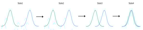 where represents the data distribution derived from real data, and is equivalent to a sampling of noise data. represents the discriminator’s expectation of the judgment result of the real sample. For the optimal discriminator D, the judgment result D(x) for the real sample should be 1, that is, log(D(x)) is 0; similarly, represents the discriminator’s expectation of the spurious sample judgment result.
