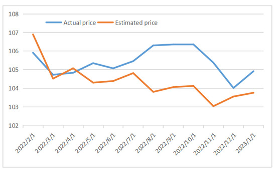 Consistent with the above, the multi-node pricing range of Shanghai Pudong Development convertible bonds is from 20 January 2022 to 20 January 2023, with 12 nodes every 30 days. The price of convertible bonds at each node is estimated, respectively, and the stock price volatility and stock price are updated every 30 days. Pricing results are shown in Figure 18 below: