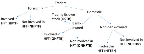 Note that our classification is novel to the literature since broker names are not released in other exchanges. Hence, we are able to associate trades with trader types. Secondly, we combine different types of data such as the list of brokers using a colocation service, those engaged in foreigners’ trades and tick-by-tick transactions. We use different algorithms to filter seven types of investors. Even if classification of different investors (e.g., foreign investors, HFT, etc.) exists in the literature, their joint combinations such as foreign investors doing HFT or bank-owned broker doing HFT have not been addressed in this way.