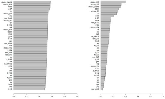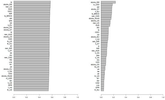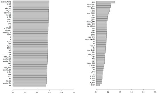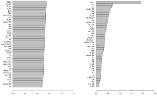 In case of variable selection and model uncertainty problems, currently, the most extensively developed approaches are those involving the use of Bayesian methods. These methods are based on the assumption that among numerous potentially interesting models, there exists a “true” model that can be identified. Examples of such approaches are Bayesian Model Averaging, which has been found useful in macroeconomic modelling, and its extension, i.e., Dynamic Model Averaging (; ; ). These Bayesian methods rely on model averaging techniques. Multiple regression models are constructed from a set of interesting, potentially important, variables, and each model is assigned a certain (posterior) probability. These probabilities are then used as weights in the model averaging procedure. The final forecast is a combination of forecasts obtained from individual models, resulting in an averaged forecast. There are arguments in favour of model averaging over simply selecting the model with the highest posterior probability (; ). Moreover, some researchers argue that selecting a model with the highest posterior probability is not always the optimal solution, but, in certain conditions, the “median probability model” may perform better ().