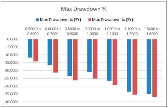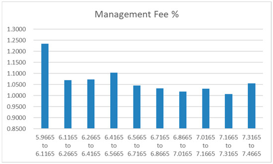 Figure 15 provides insights into the relationship between management fee and ESG score groups, revealing that the group with the lowest ESG score tends to charge the highest management fee. Similarly, Figure 8 illustrates that the group with the lowest ESG score generates the highest annualized return. These findings align with the observations in Figure 1, Figure 2, Figure 3, Figure 4, Figure 5, Figure 6 and Figure 7, where the group with the highest management fee generates the highest return, highest annualized volatility, and highest max drawdown. Conversely, the groups in the middle charge lower management fees and produce higher risk-adjusted returns, consistent with the findings in Figure 1, Figure 2, Figure 3, Figure 4, Figure 5, Figure 6 and Figure 7.