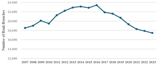 Another body of literature investigates the obstacles to entrepreneurial activities.  () argue that access to external financing is pivotal when it comes to creating new businesses. For instance, the accessibility of bank branches in one municipality plays such an important role in the local market that when a client decides to move from one bank to another, he/she can obtain a greater discount in comparison with other funding options. However, when a branch closes and clients need to forcefully move to another bank, they do not receive similar benefits (). Along these lines, the increase in bank branches also supports the local economy through labor finance. As evidenced by  (), which investigated the opening of 800 bank branches across Mexico in an almost simultaneous manner, there is a significant effect on access to finance on the labor market and income levels, especially in areas with little to no bank penetration. Following that, not only can business owners increase their operations by investing in machinery, supplies, and human capital, but individuals can also enjoy a better quality of life.