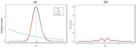 Comparison of expected risk of Model Type I: (a) shows the probability function of the exponential random variable (0.5) and (b) shows the difference in the probability functions of and .