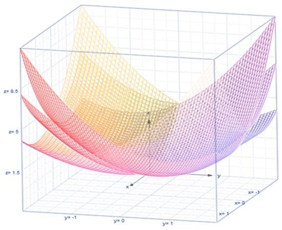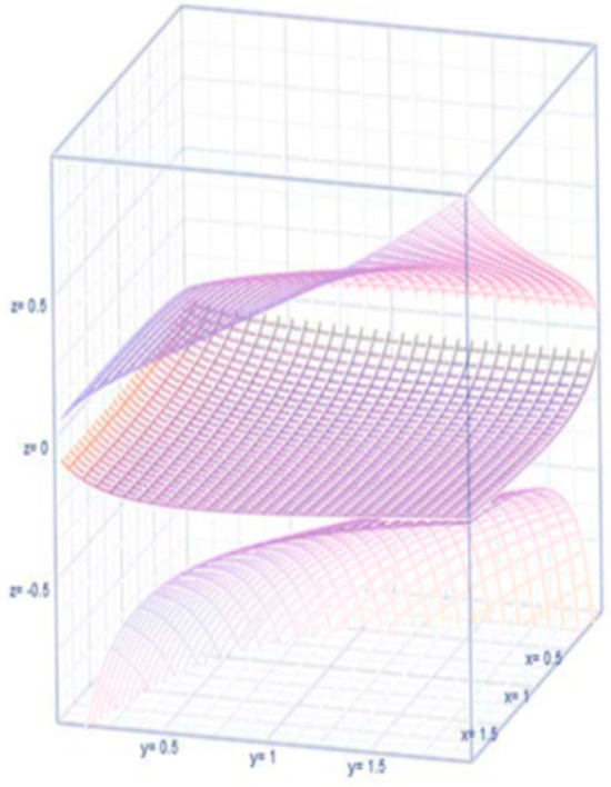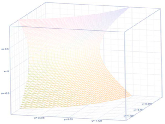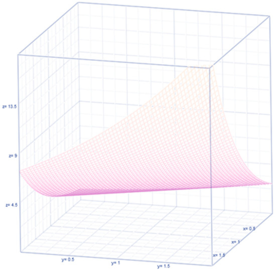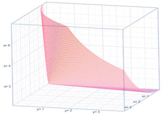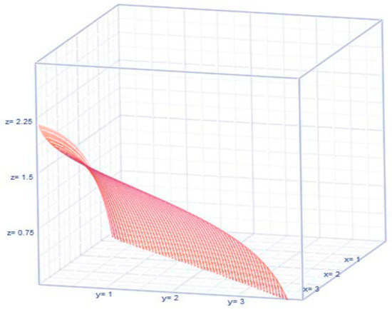 Let , and , denote, respectively, the marginal median and mode of the revenues and expenses. Also, their expected values under lognormal chance mechanism for the revenues and expenses variables are , (see their configurations in Figure 5), with their covariance as a function of their variances and risk (see Figure 6). The median and mode of the revenues and expenses are indicated by , , , .