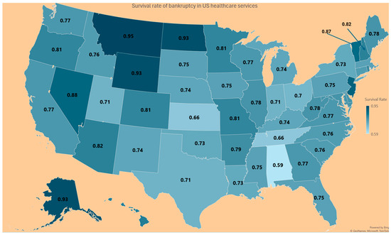 Probability for a hospital to experience financial bankruptcy in U.S. states.