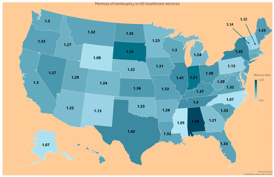 The memory of the banking system or the organizational memory plays a role in safeguarding it from becoming bankrupt. Kyoud et al. (2023) provided insights into the inherent systemic memory level of the banking system before bankruptcy. Gomes et al. (2023) provided suggestions for the owners of restaurants in Portugal to increase leadership skills to manage the crisis to avoid bankruptcy during the COVID-19 pandemic. An analogous situation exists in the banking sector, as pointed out by Kyoud et al., and in the economy of Eastern European countries, as pointed out by Gomes et al. The system consists of measurable and non-observable observations, which are recognized as parameters. What has been happening in the system is portrayed by its memory. Memory is describable by the observables and the parameters together. The observables are smoothed over. The system’s memory is quantified by the parameters, as carried out in the derivation of expression (8) later in the article. Wieczorek-Kosmala (2021) advocated the importance of recognizing the existence of risk and its management to avert bankruptcy in all sectors including hospitals based on the system’s memory. Prusak (2018) examined the crucial role of the risk due to the economy in predicting bankruptcy in East European countries. There has been a tendency in almost all U.S. states for a hospital to outspend more than the average expenses of the state, and this is so in thinly populated states such as Hawaii, Montana, Wyoming, and North Dakota. In almost all U.S. states, the memory of excessive spending over the state’s average expenses is higher than the baseline memory 1.0 except in the states of Hawaii, Wyoming, Virginia, North Carolina, Mississippi, and Arkansas. When such a hospital’s memory is greater than 1.0, there might be conscious efforts to prevent bankruptcy from occurring. In our stochastic approach, the concept of memory personifies conscious or unconscious efforts by the hospital administrators’ reaction to the continuing pattern in which the hospital’s revenues have been lesser than the expenses. The higher level of such memory level is indicative of a lower chance for bankruptcy to occur.
