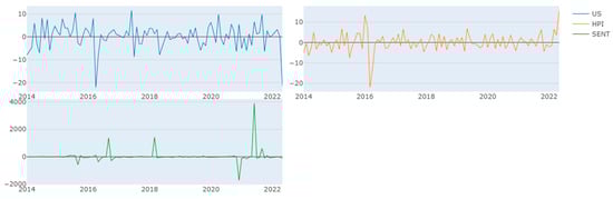- Yousaf, Imran, Manel Youssef, and John W. Goodell. 2022. Quantile Connectedness between Sentiment and Financial Markets: Evidence from the S&P 500 Twitter Sentiment Index. International Review of Financial Analysis 83: 102322. [Google Scholar] [CrossRef]