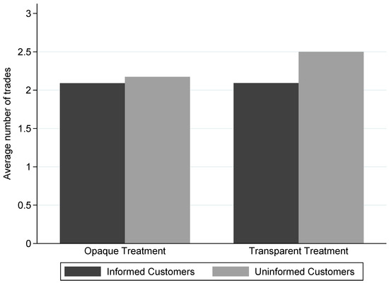 Trading frequency by treatment and customer type. The graph illustrates the average number of trades for the Opaque and Transparent treatment made by informed and uninformed customers.