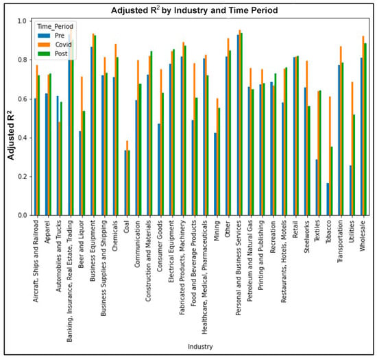 Adjusted R2 values of the Fama–French regression analysis per industry per period. As can be seen, the explanatory power of the model in explaining average industry returns increased in almost all industries upon the onset of the pandemic.