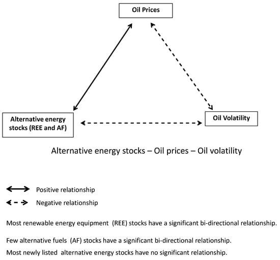 This study examines the simultaneous relationships among oil prices, oil volatility, and two sub-sectors within alternative energy stocks: renewable energy equipment (REE) and alternative fuels (AF). The results confirm the existence of a bidirectional relationship. While most alternative energy stocks with a long history on the stock exchange exhibit a bidirectional positive correlation with oil prices, they demonstrate a bidirectional negative correlation with oil volatility. In particular, a majority of REEs, as opposed to a minority of AFs, demonstrate a bidirectional positive correlation with oil prices. Conversely, the majority of REEs, contrasted with a minority of AFs, exhibit a bidirectional negative correlation with oil volatility. Notably, newly listed alternative energy stocks show no significant relationship with either oil prices or oil volatility. This suggests that these emerging entities may be influenced by factors beyond traditional energy market dynamics, such as technological innovation, regulatory frameworks, or investor sentiment. Furthermore, the findings highlight that REEs tend to have a more substantial relationship with both oil prices and oil volatility compared to AFs. Recognizing the distinct sensitivities and market behaviours of these sub-sectors can enable more informed decision-making and resource allocation.