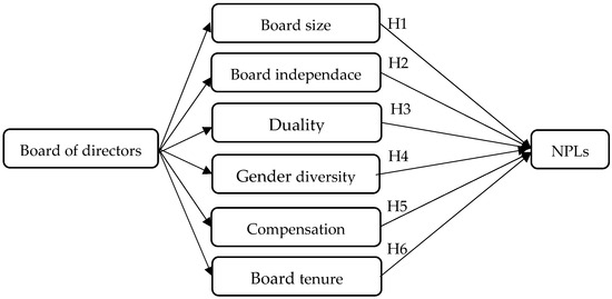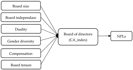 The empirical strategy is based on two models: In the first model, we estimate the impact of board characteristics on NPLs separately (Figure 1) using the following Equation (1):