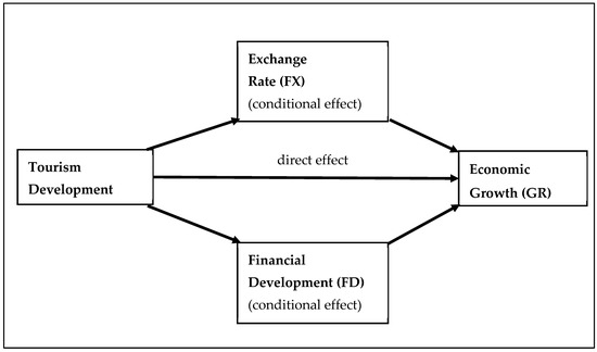 - H2: Financial development and exchange rates moderate the relationship between tourism and economic growth, such that the strength or direction of the relationship varies depending on these contextual factors.