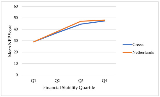 NEP scores by financial stability quartiles in Greece and the Netherlands.