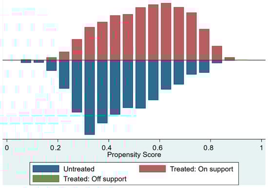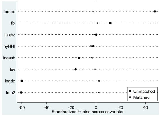 Figure 4 illustrates the cross reference of standardized deviations of covariates before and after Propensity Score Matching (PSM). Following PSM, the standardized deviations of most covariates were significantly reduced, indicating that the matching process successfully precluded the initial Variance between the hypo-financing constraint group and the high-financing constraint group, thereby enhancing the comparability of the advanced compilation. This validates the effectiveness of PSM in controlling selection bias.