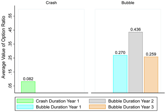 Figure 2 shows CEOs exercising a greater proportion of their exercisable options in the first year of the crash (consistent with a stop loss strategy) followed by fewer option exercises in subsequent years of the multi-period crash. It shows that executives exercise more of their exercisable options in the second year of the bubble’s duration, but less in the third year of the bubble’s duration. While suggestive, Figure 2 does not allow one to draw firm conclusions about the relationship between bubbles and option ratio.