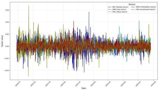 The authors Fama and French (2015) proposed to incorporate profitability and investment factors together with existing factors (market, size, and value) with the aim of capturing the trend of average stock returns. The five-factor model (FF5) establishes the relationship between these factors and expected portfolio returns based on the dividend discount model and valuation theory. The risk premium factors SMB, HML, RMW, and CMA reflect size, value, profitability, and investment, respectively (Kuo & Huang, 2022).