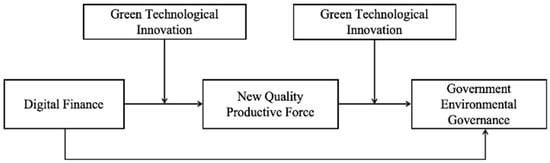 New quality productive forces (NQPFs) are an advanced form of productivity that breaks away from traditional economic growth patterns and productivity development paths, featuring high technology, high efficiency, and high quality, aligning with the new development philosophy. Centered around technological innovation as its core driving force, new quality productive forces have spawned a multitude of emerging industries and cutting-edge technologies, which exhibit high growth potential and high risk in capital requirements. The flourishing development and widespread application of digital finance can precisely drive new quality productive forces formulation and advancement, accordingly indirectly facilitating the enhancement of government environmental governance. Firstly, digital finance effectively reduces the threshold and cost of capital allocation through efficient information processing and technological applications, providing strong financial support for strategic emerging industries. Strategic emerging industries, which are frequently propelled by high-tech innovations, demonstrate exceptional prowess in technological innovation and the enhancement of production capacity. Their rapid development not only facilitates industrial and structural transformation but also nurtures a batch of efficient and environmentally friendly new quality productive forces, remarkably driving the green transformation of the regional economy. Secondly, new quality productive forces enhance the precision and efficiency of environmental governance by virtue of intelligence, automation and other advanced technologies, as well as assist in weakening the reliance of industries on natural resources and mitigate environmental damage, alleviating the imbalance between economic development and environmental protection and laying a solid foundation for achieving environmental governance goals. Taking all these into account, this study sets forth the following hypothesis: