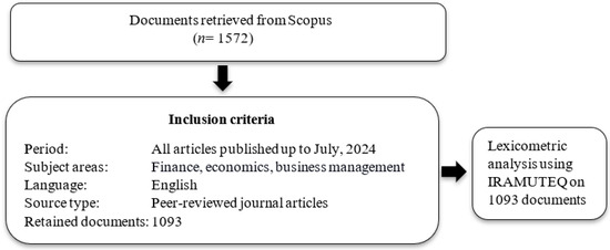 Consistent with prior practice in review articles (e.g., Büyüközkan et al., 2024; Limbu & Huhmann, 2024), inclusion criteria were used to screen the identified articles and isolate only those relevant to the current study’s research objectives. Only documents written in English were included, as English is the primary language used in academic publishing for fields such as finance, economics, and business management. This criterion also helps minimize any complexities or time required for translation (Neimann Rasmussen & Montgomery, 2018).