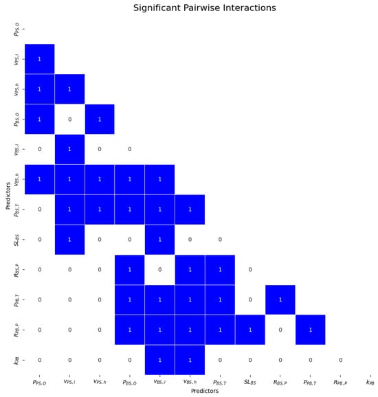 Figure 6 presents the results of the interaction term analysis, displaying all bivariate interaction terms and emphasizing their statistical significance or lack thereof. The significant interaction pairs reveal two main structural patterns in the model. First, there are notable inter-agent dependencies, where parameters associated with one agent type, such as the offer probability of Buyer Sellers (), are influenced by or dependent on the behaviors and pricing strategies of other agent types. This interdependence highlights the interconnected nature of agent actions within the market, where the decisions of one group can amplify or mitigate the impact of another. Second, price-sensitive dynamics play a central role in shaping market liquidity. Many of the significant interaction terms involve price bounds, underscoring their importance in either moderating or amplifying the effects of other parameters. Pricing bounds appear to be a critical factor in determining how effectively the market absorbs supply and maintains liquidity. Together, these patterns illustrate the complex, interconnected mechanisms that govern the simulated market dynamics.