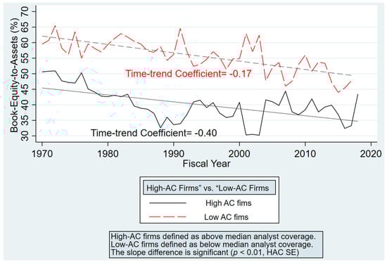 Our findings also extend the literature on the effects of accounting conservatism on financial statements and equity valuation. Prior studies have focused more on the effects of accounting conservatism on earnings quality (), accrual quality (), and earnings management (). Very few studies have investigated how accounting conservatism may affect book equity on the balance sheet, which has important implications for financial analysis and valuations. For example, as BE systematically decreased over time, all BE-based valuation metrics have increased mechanically. Since our results suggest that accounting conservatism is an important factor that contributes to the declines of BE, financial analysts and other users of financial statements can make the necessary adjustments to valuations of companies with varying levels of accounting conservatism and book equity. Our results, therefore, provide additional insights for equity market users of financial statements who rely on BE-based valuation metrics such as the market-to-book ratio to construct portfolios or to forecast information about equity securities.