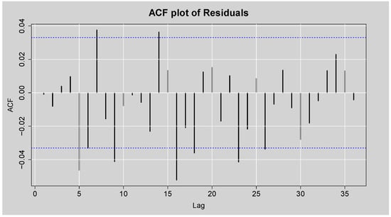 ACF and PACF plots of the Residuals from ARMA(3,2) model.