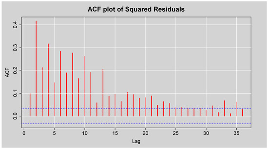 ACF plot of the Squared Residuals from ARMA(3,2) model.