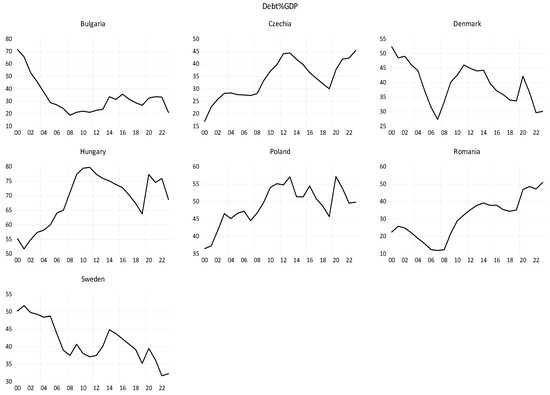- Vratislav, I. (2009). Primary balance, public debt and fiscal variables in postsocialist members of the European Union. Prague Economic Papers, 2, 114–130. [Google Scholar] [CrossRef]
