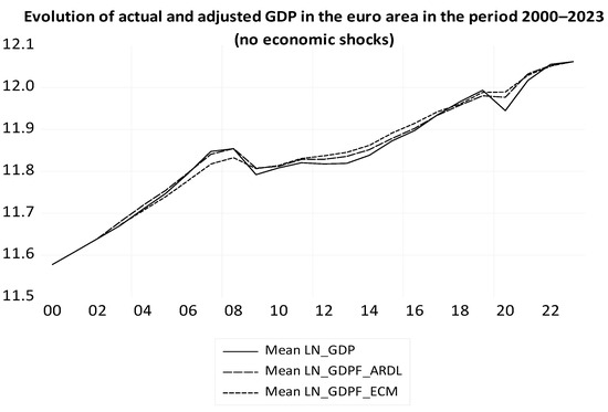 Descriptive statistics of real and theoretical economic growth in the euro area in the period of 2000–2023.