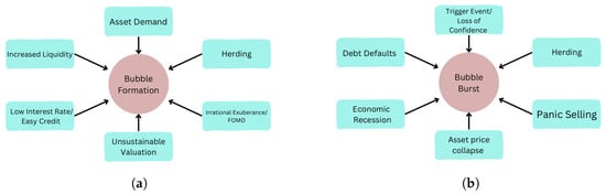 Factors driving the formation and collapse of financial bubbles in stock markets. (a) Factors driving bubble formation; (b) factors driving bubble collapse.