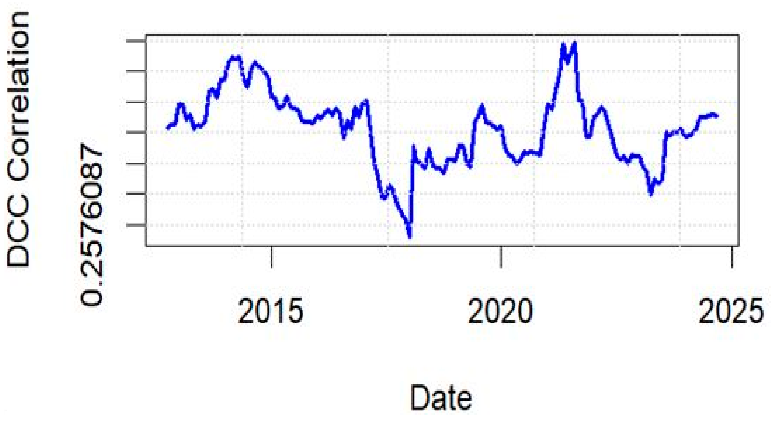 2017b) similarly used DCC-GARCH to track changes in bitcoin’s hedge efficacy in response to global risk aversion measurements. Extreme co-movements between bitcoin and other assets intensify under joint market stress, according to copula-based approaches which have been used to identify tail dependencies. Copulas, however, failed to reveal the sequence in which shocks arise and lack a temporal component.