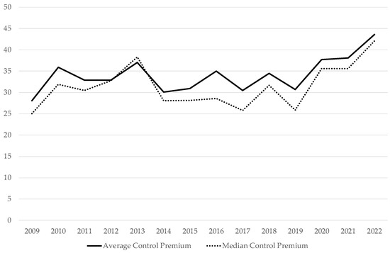 This study analyzes the development and determinants of control premiums in mergers and acquisitions in the European market from 2009 to 2022 (i.e., stock volatility, liquidity via money supply, sectoral growth, transaction volume, market capitalization, free cash flows, presence of a toehold, public listing, cross-border transactions, payment types, and sectoral relatedness), whereby control premiums represent the premium that buyers pay above the current market value of a company to gain control. The empirical analysis implements linear as well as quantile regression analyses. Results reveal that the average and median premiums fluctuated notably between 2009 and 2022, with the lowest premiums paid in 2009 and the highest in 2022. Factors such as the volatility of the stock market, capital liquidity, and deal activity within certain sectors have a consistently significant influence on the level of premiums if a longer period of analysis is selected. Cross-border status, payment structure, stock market listing of the acquiring company, and the build-up of a toehold influence the premiums paid in shorter- and longer-term analyses. In contrast, neither the market capitalization nor the free cash flow of the target company has a significant influence on the premiums paid.