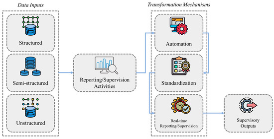 | Streaming and Continuous Data Flows | APIs, real-time data pipelines, event-driven platforms | Enable supervisors to access data streams continuously rather than waiting for periodic submissions, reducing supervisory lag | (Grassi & Lanfranchi, 2022; Kanojia et al., 2024; Loiacono & Rulli, 2022; Shi et al., 2025) |