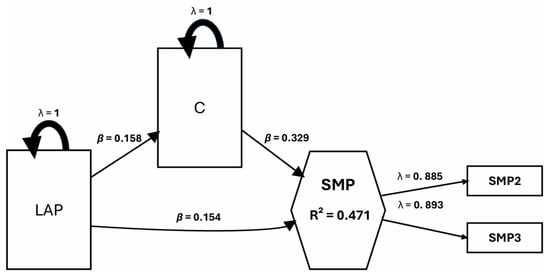 The mediation model is evaluated within a PLS-SEM framework, emphasizing the estimation of bootstrapped indirect effects with confidence intervals to ensure methodological rigor and alignment with current analytical standards. It consists of two equations: