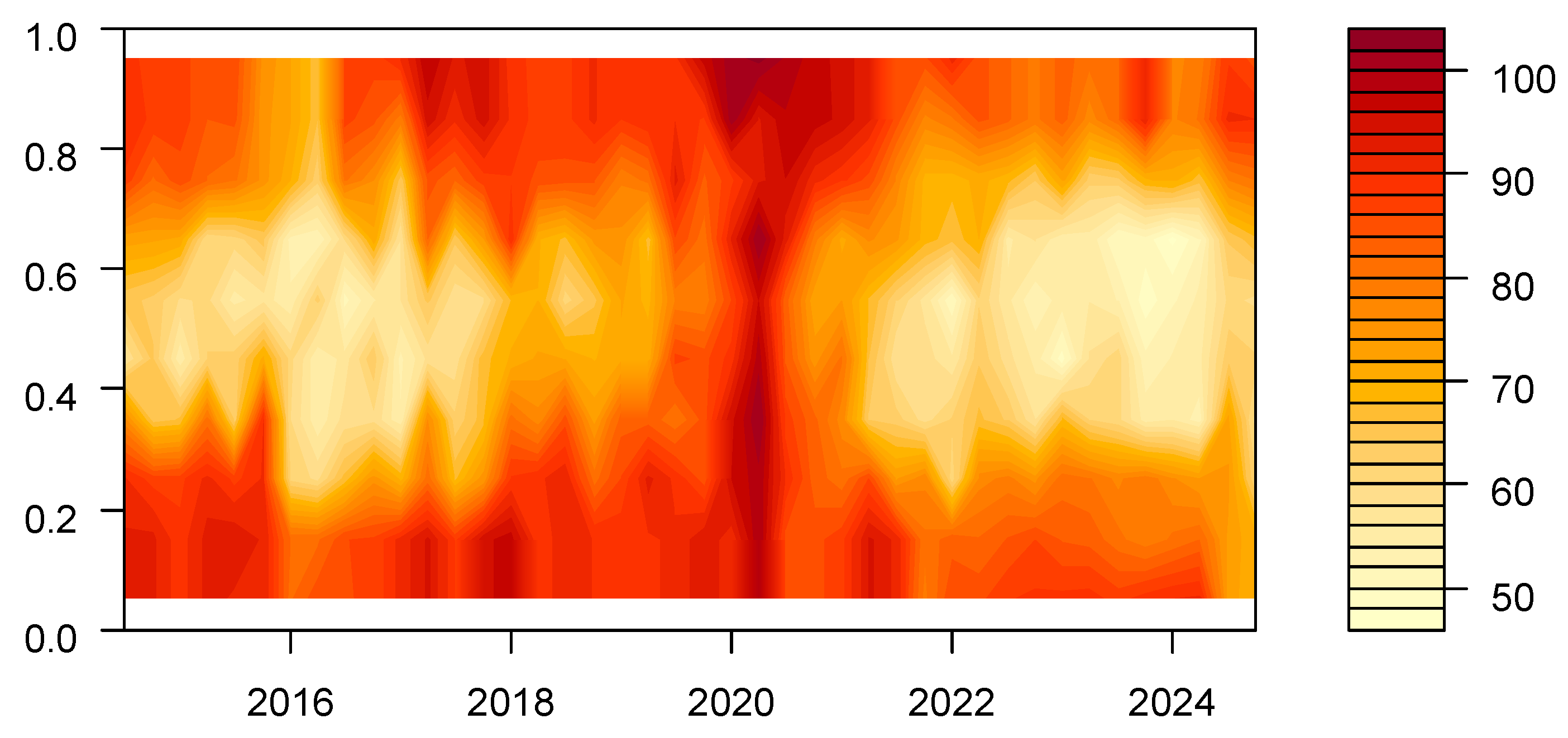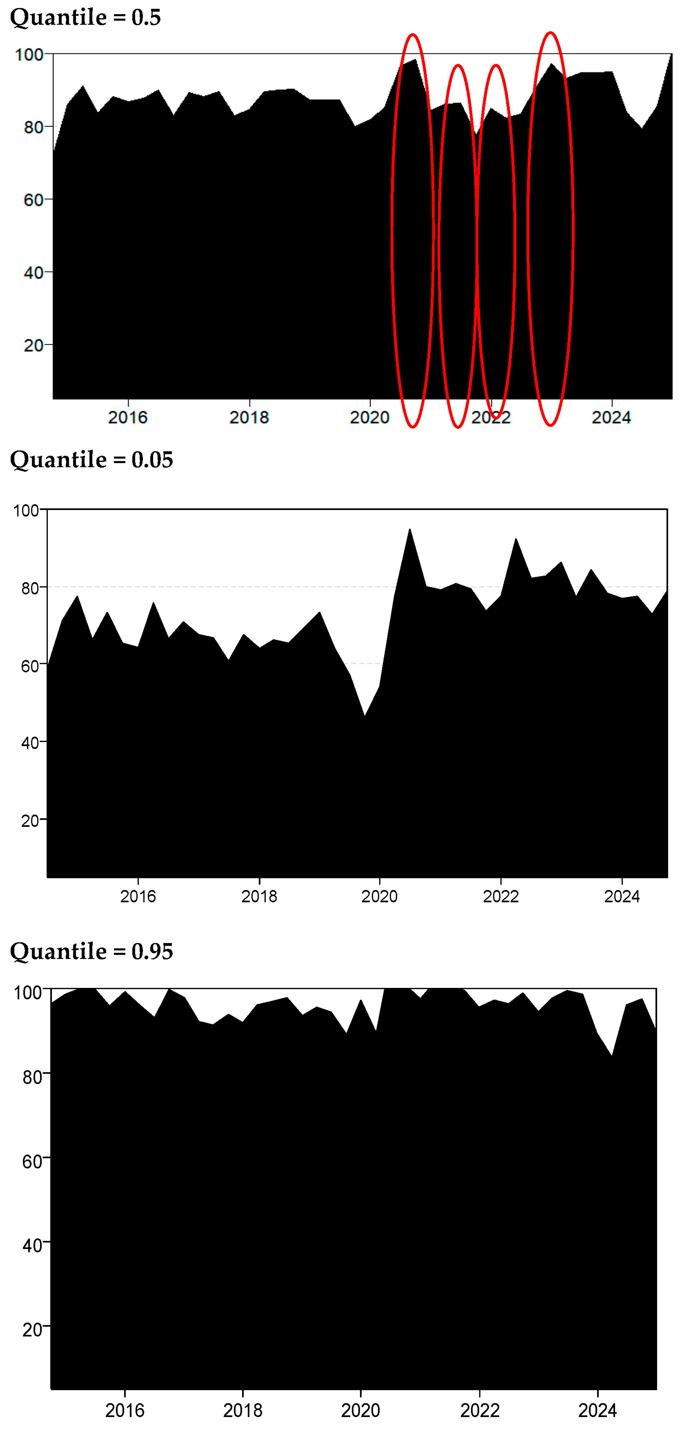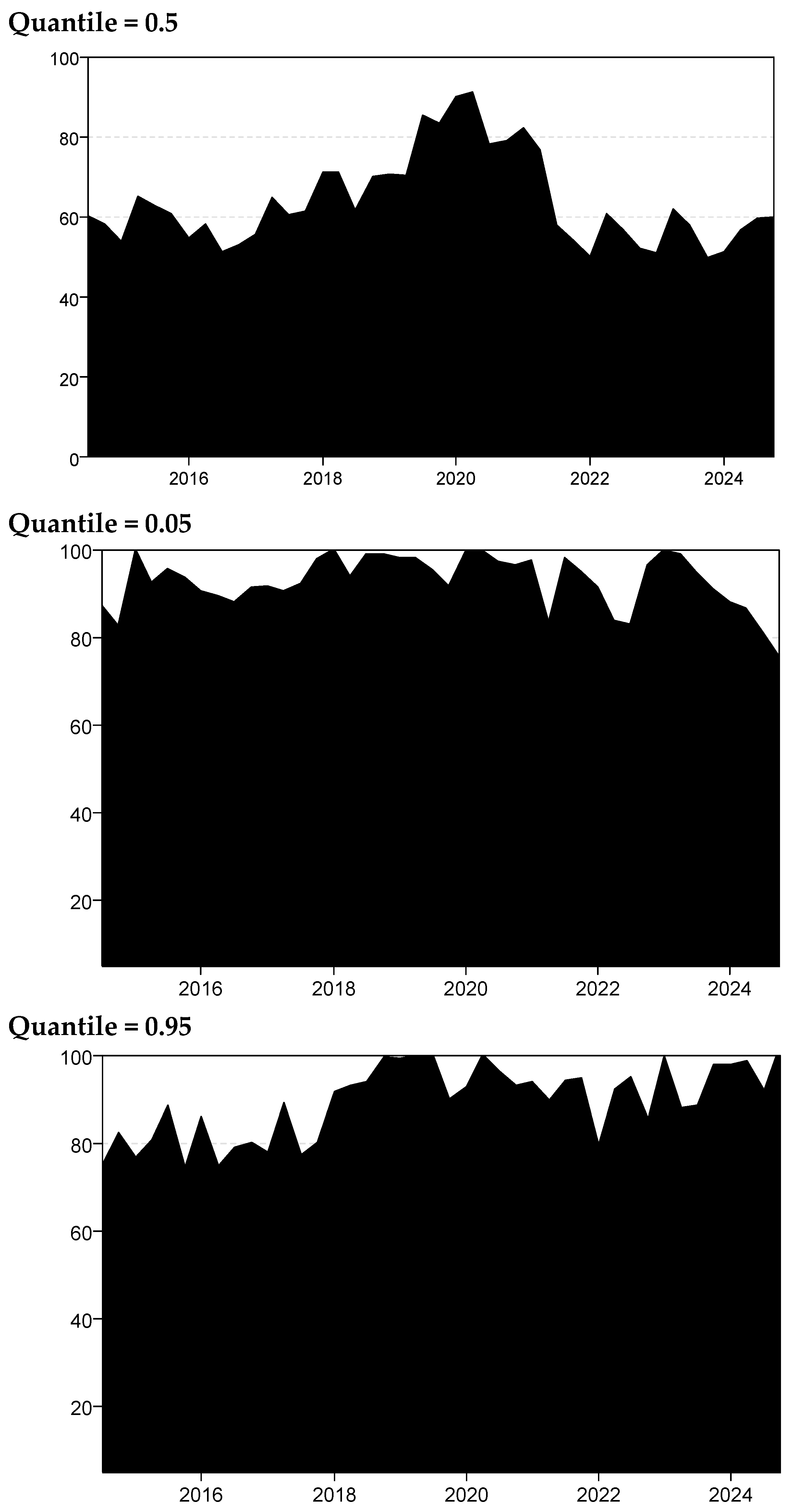 - Chavleishvili, S., & Manganelli, S. (2024). Forecasting and stress testing with quantile vector autoregression. Journal of Applied Econometrics, 39(1), 66–85. [Google Scholar] [CrossRef]