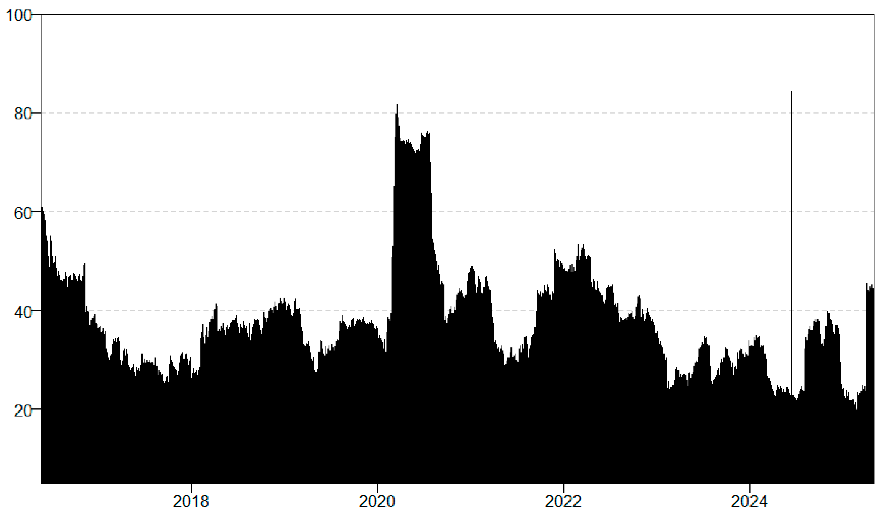 | VIX | 64.34 | 1.59 | 5.15 | 4.01 | 10.21 | 6.81 | 2.62 | 3.02 | 2.25 | 35.66 |