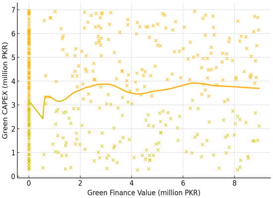 Scatter of green CAPEX vs. green finance value with LOWESS curve (see embedded figure in electronic article).