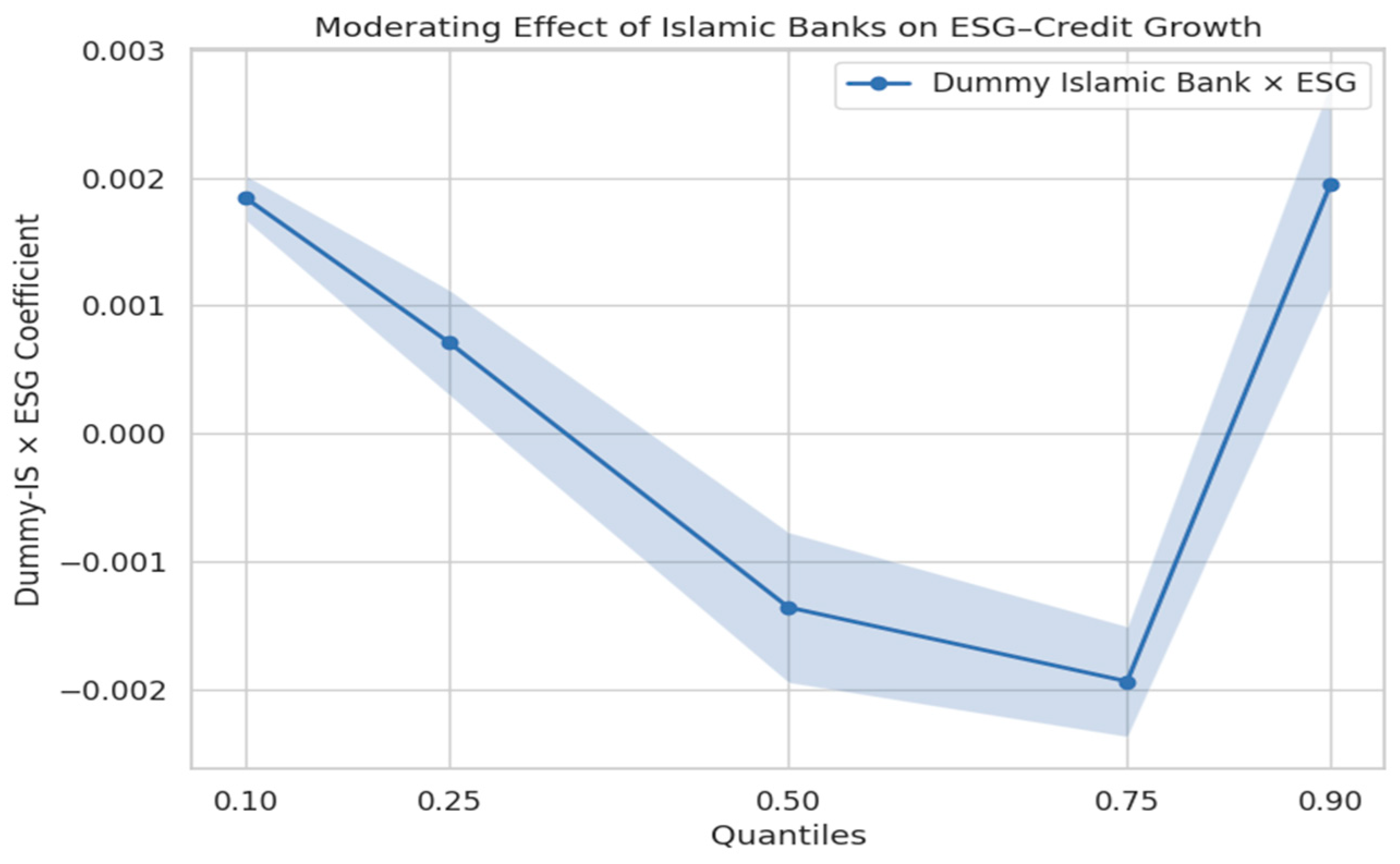 4.3.3. How Islamic Banks Moderate the Relationship Between ESG and Credit Growth