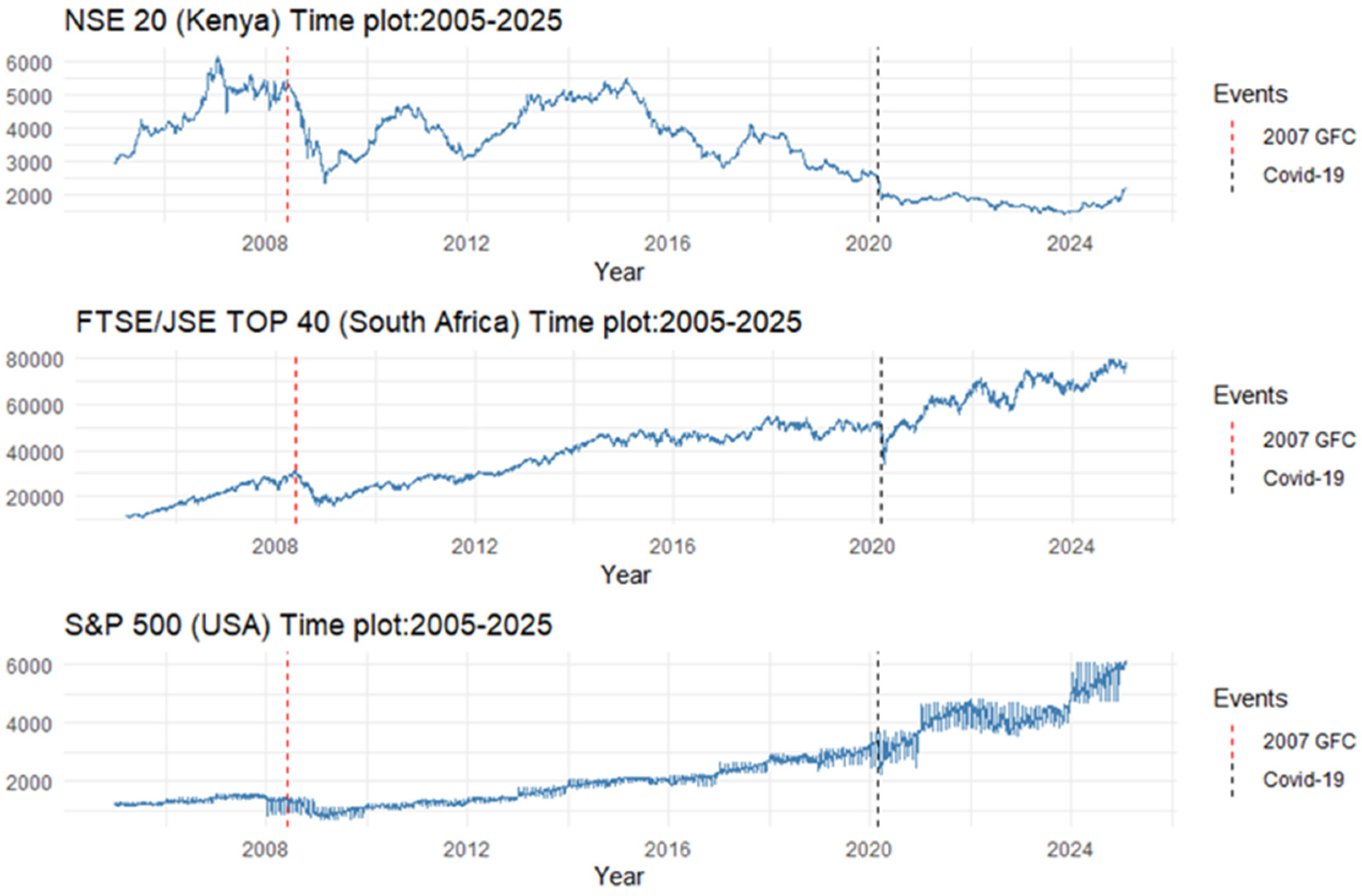 The continuous development of more effective financial risk management tools and strategies is vital in today’s world of globalisation and interconnected economies. In recent times, the Global Financial Crisis (GFC) of 2007–2008 and the most recent COVID-19 pandemic (2019–2021) are amongst the most notable rare events that had major impacts on stock markets globally. These events created extreme fluctuations in stock market prices, which resulted in dire economic conditions across various economies. The increasing trend in the occurrence of such extreme events (“Black Swans”) in financial sector has brought about a need for more robust statistical models that go beyond the scope of traditional risk models (Singh et al., 2012). These events often appear as random and unexpected to regular people; however, scientists connect them to a well-defined set of rules known as extreme value theory (EVT).