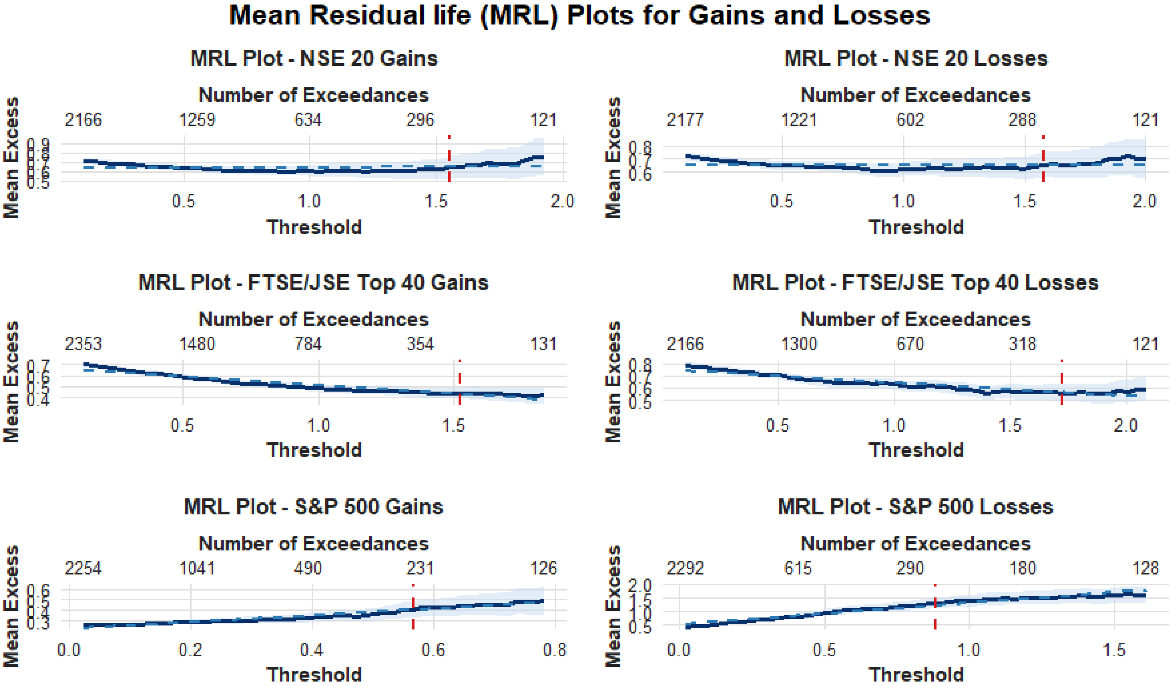 In financial risk modelling, many traditional risk models like Value at Risk (VaR) have been explored in an attempt to quantify market risk; however, most of these models usually underestimate tail risks because they fail to capture extreme events effectively; this limitation leaves investors, policymakers, and financial institutions unprepared for market crashes. According to Danielsson and De Vries (2000), financial returns typically exhibit non-normal characters, such as leptokurtosis, volatility clustering, and leverage effect. The leptokurtic nature of financial returns is generally the primary reason for the shift to heavy-tailed distributions in risk modelling; this is mainly due to their efficiency in capturing large extreme losses. Sweeting (2011) outlines the two commonly used approaches for modelling extreme events, the block maxima (BM) and the peak-over-threshold (PoT) methods. For BM, the dataset is divided into blocks of similar intervals, usually daily or monthly; thereafter, a sample of maxima or minima are extracted from these blocks, and a generalised extreme value distribution (GEVD) is fitted to them. The PoT approach on the other hand, involves the selection of a threshold value for which all the data points (known as exceedances) above this value will be classified as extreme values. For a sufficiently large threshold value, the conditional excess distribution function of these exceedances is summarised by the generalised Pareto distribution (GPD) (Chernobai et al., 2007).