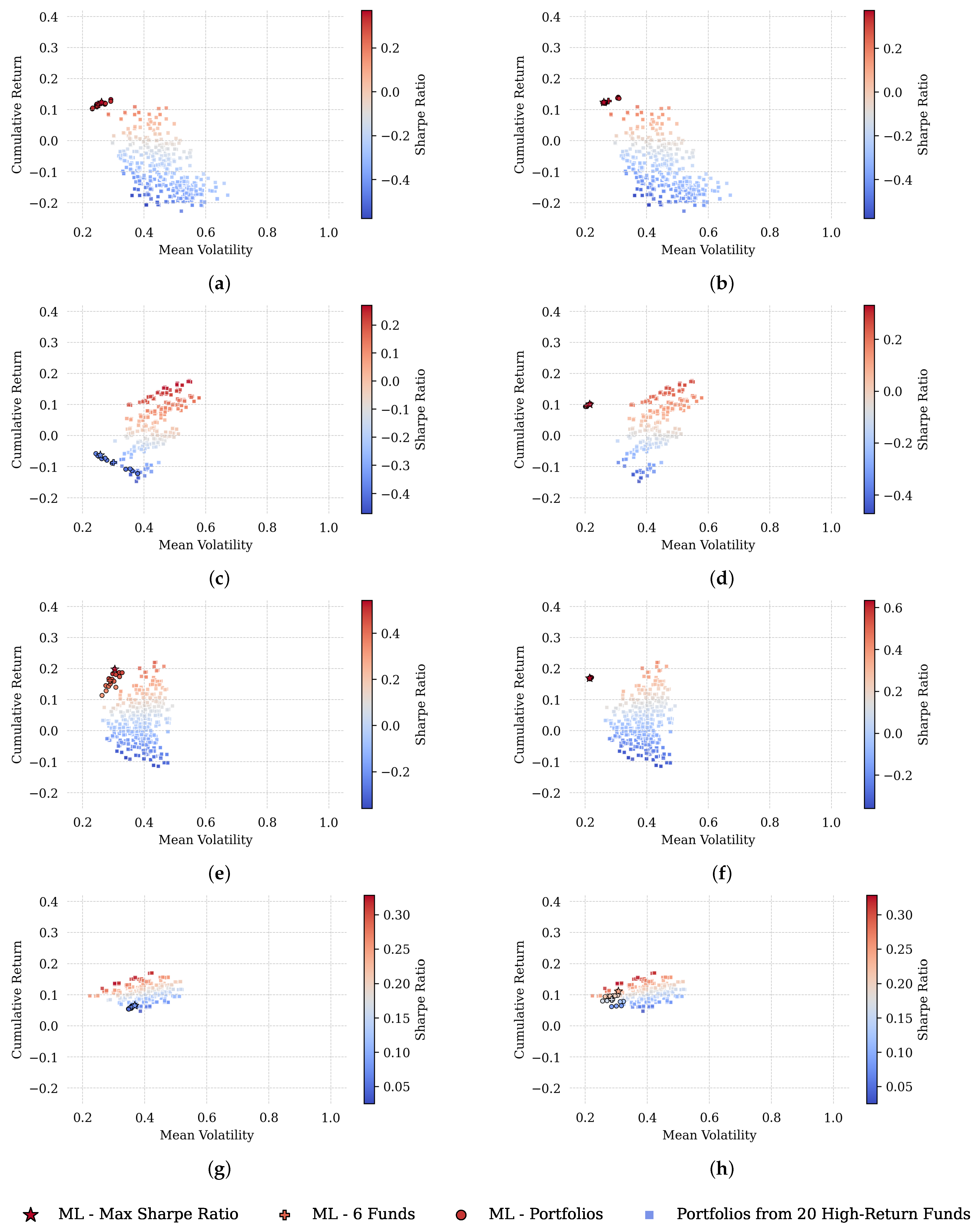 Portfolios are subsequently constructed by combining these six funds in groups of four, providing diversification while avoiding over-dilution of the ML signal, which results in 15 distinct portfolios for each strategy and allocation date (see