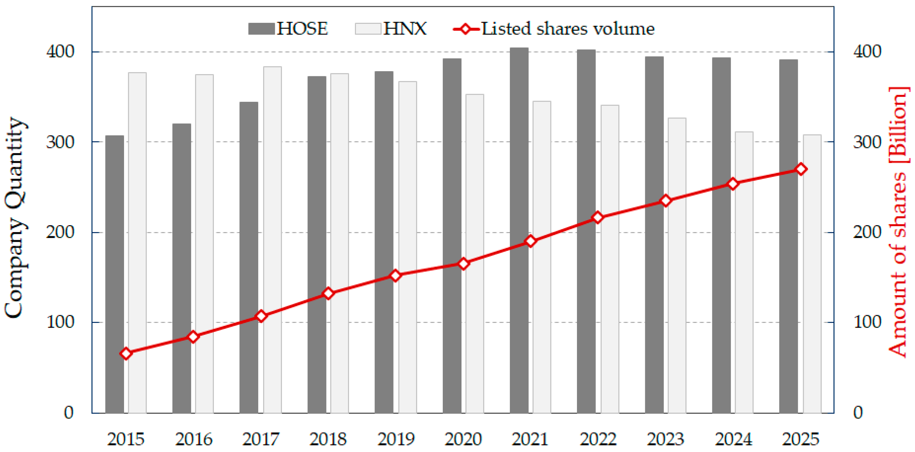 In recent decades, stock markets have emerged as significant drivers of economic growth, particularly in emerging economies like Vietnam. Since joining the World Trade Organization (WTO) in 2007 and deepening economic integration, Vietnam has witnessed remarkable development in its stock market, marked by an increasing number of listed firms and a rising market capitalization. As of 2024, the Ho Chi Minh Stock Exchange (HOSE) and the Hanoi Stock Exchange (HNX) have become key financial hubs, hosting over 700 listed companies with a combined market capitalization approximating 90% of the national GDP. Both exchanges operate under the oversight of the State Securities Commission (SSC), a government agency under the Ministry of Finance, which is tasked with issuing regulations, monitoring compliance, and imposing sanctions to ensure market transparency and stability.