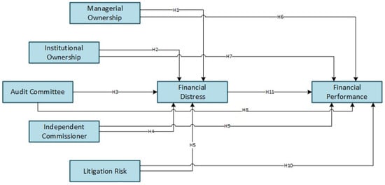 This study aims to analyze the impact of governance structures on the value of construction firms in the ASEAN region, with financial distress acting as a mediating variable. Figure 1 presents the conceptual framework that illustrates the hypothesized relationships between corporate governance structures, financial distress, and firm value. The governance structures tested in this study include managerial ownership, institutional ownership, independent commissioners, audit committees, and litigation risk, which together represent key elements of corporate governance frameworks. This research seeks to give theoretically by enriching the existing literature on corporate governance, financial distress, and firm value. In addition, the study offers practical insights for regulators, corporate managers, and investors in the construction sector by highlighting ways to strengthen governance mechanisms and anticipate potential financial difficulties. Ultimately, the outcomes are expected to assist firms in building long-term resilience and sustaining corporate value in an increasingly competitive market environment.