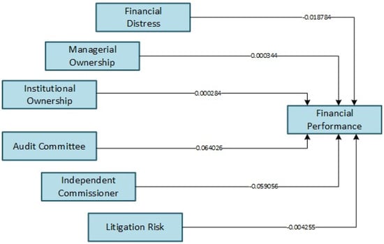 In contrast, the outcomes show that financial distress does not function as a mediating variable in other connections, comprising managerial ownership (H12), independent commissioners (H14), audit committees (H15), and litigation risk (H16). This suggests that not all governance mechanisms influence firm value through financial distress; rather, many operate primarily through direct effects.