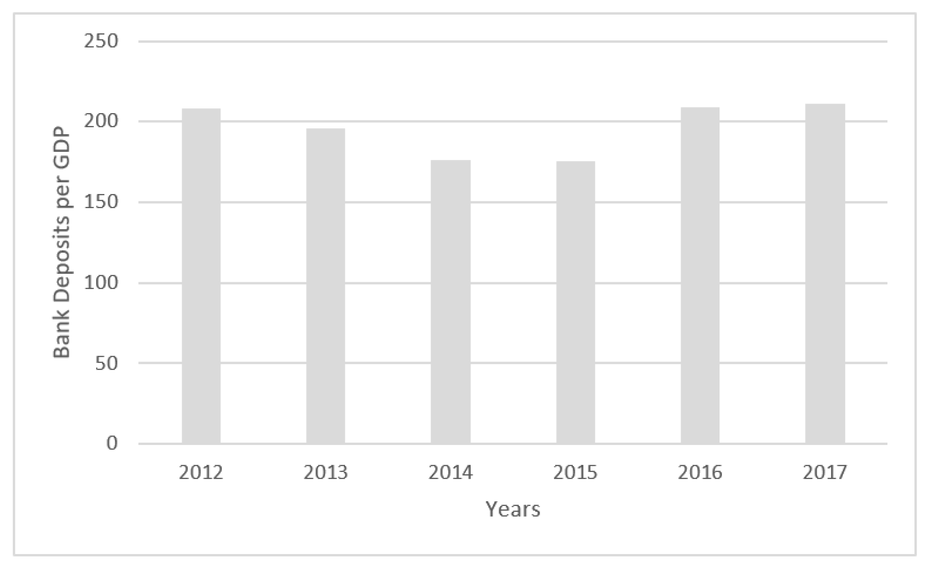 Figure 1 presents the situation of financial deposits in the Cyprus financial system, as a percent of GDP, for the period from 2012 to 2017. In addition, the next scheme presents the GDP of Cyprus from this period.