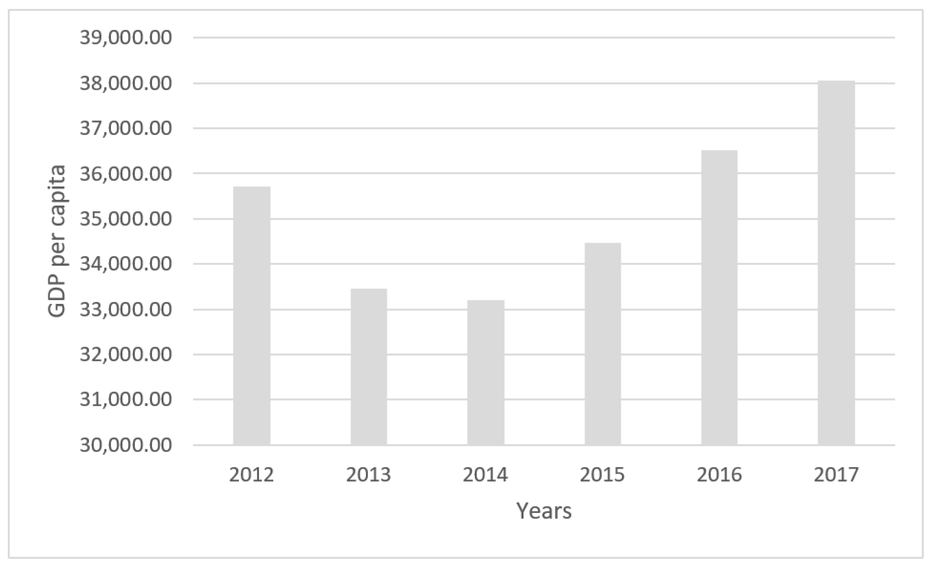 Figure 2 presents the condition of the GDP of the Cyprus economy for the period from 2012 to 2017. Also, the next scheme presents the GDPs of Cyprus for the same period.
