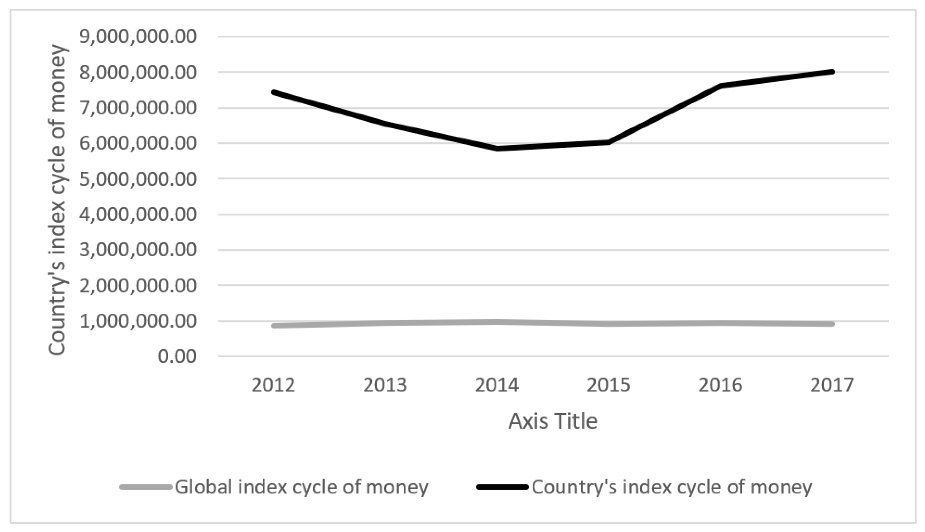 In terms of the comparability between national and global cycle-of-money indices, the global average index of the cycle of money is constructed using an aggregation logic that differs from the national-level calculation. At the national level, the index reflects the internal redistribution and reuse of money within a single economic system, based on country-specific GDP and bank deposit dynamics. By contrast, the global average index is derived from aggregated international data and represents a synthetic benchmark rather than an internally closed economic system. As such, the global index does not correspond to an observable global economy with unified monetary circulation, but instead captures an average structural reference point across heterogeneous national systems. In terms of the interpretation of horizontal comparison and benchmark use, the comparison between the Cypriot index and the global average is therefore not intended as a strict like-for-like accounting comparison. Rather, the global index functions as a normalized reference benchmark that indicates the threshold of a well-structured monetary circulation system under the Theory of the Cycle of Money. The fact that Cyprus exceeds this benchmark does not imply mechanical superiority over a hypothetical global economy, but signals that its internal monetary circulation operates at a level associated with high structural functionality. The comparison is thus qualitative and diagnostic, not an assertion of direct quantitative equivalence. With regard to methodological limitations and clarification of scope, the difference in aggregation logic between national and global indices is acknowledged as a methodological limitation. To avoid misinterpretation, the manuscript does not claim that national and global indices are perfectly comparable in absolute terms. Instead, the global benchmark is used to contextualize national performance within the theoretical framework of the cycle of money. Future research should focus on developing harmonized aggregation methods or panel-based normalization techniques that would allow more precise quantitative comparison across levels of analysis.