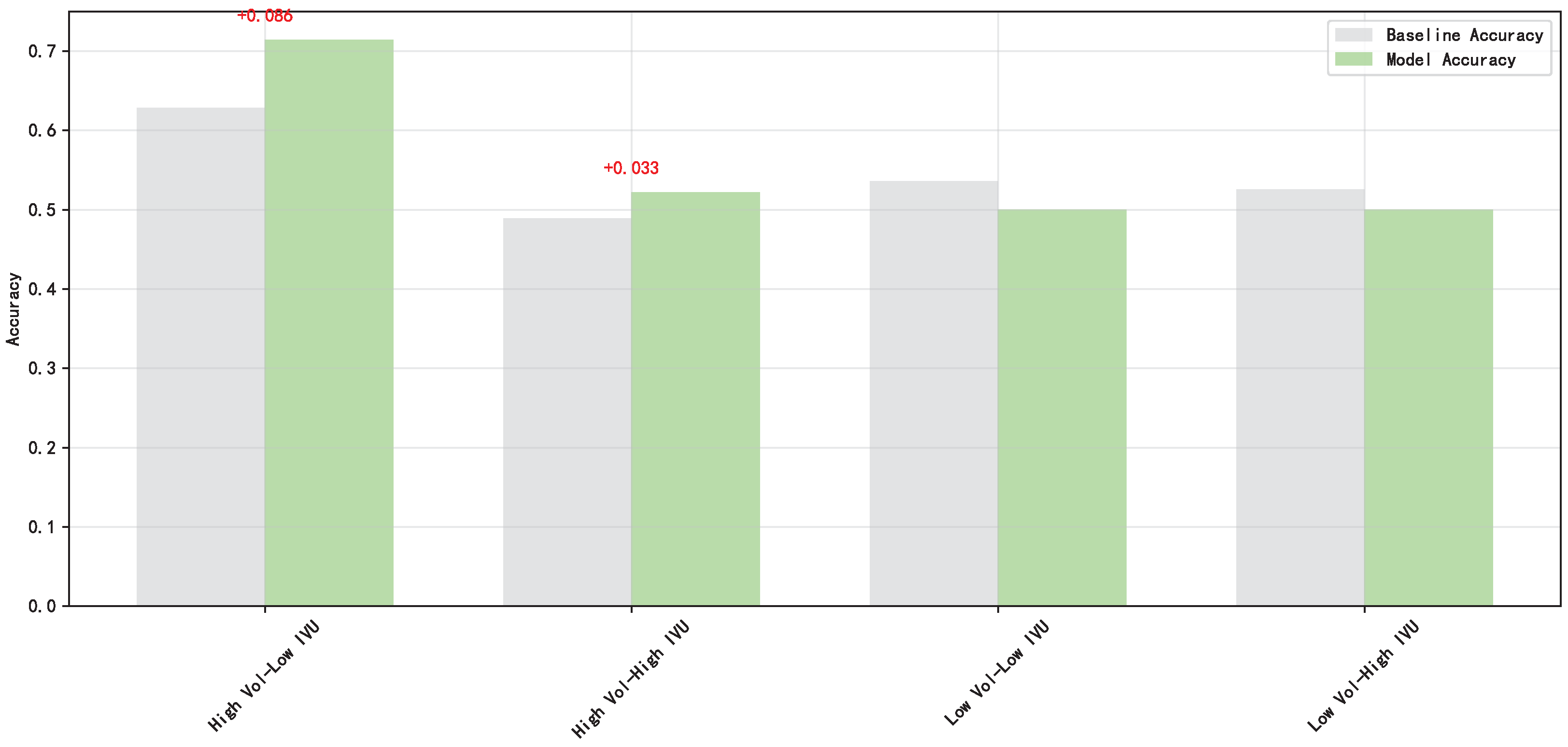 The empirical evidence robustly supports our theoretical framework. Threshold regression identifies a significant IVU critical value of 0.476225 (p < 0.001), separating distinct uncertainty regimes. In high-uncertainty conditions (low IVU) combined with high opening volume, predictive accuracy reaches 63.04% in logistic regression and 71.43% in XGBoost out-of-sample tests. The machine learning approach further validates the importance of IVU-related features, with interaction terms ranking among the most influential predictors.